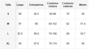 Tallas y medidas (cm)